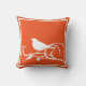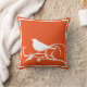 Gorgeous pillow with a white design that features a bird on a swirling branch. There's a border of white as well. We're showing this on a brilliant orange background, but the genius is that you can choose literally any color you want for the background. Match your sofa, contrast with walls, create any color pillow you want. It's super simple, just choose "customize this design".