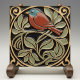 Bird on Flowers Art Deco Nouveau Faux Relief Ceramic Tile
