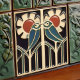 This ceramic tile features two birds and floral patterns reminiscent of the iconic style of Mackintosh. He was a prominent Scottish architect, designer, and artist of the Art Nouveau movement. Clean lines, geometric shapes, and a strong sense of symmetry characterize his work. These elements are beautifully represented in our collection of ceramic tiles.