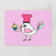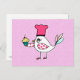Cute pink post cards featuring a bird in a chef hat holding its sweet creation. Great "just because" postcard for the sweet pastry chef in your life! © Copyright Paisley In Paris™. All rights reserved.