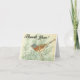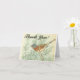 The front of this vintage look thank you greeting card design features the appreciative message "Thank You!" in script like text, along with a depiction of a bird perched on a branch. The inside features a customizable message of appreciation. A greeting card like this could be used to send thanks to somebody who has done something special.