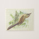This vintage look puzzle design features a bird that is perched on a tree branch.