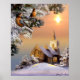 This artwork has a feel of peace and tranquility. The inviting lights in the church windows say: “Come on in. As the building stands for a sanctuary for people, so is the tree with its full branches for the little robins against the cold of the winter. This painting, painted in analogous colors, is fitting for most any traditional home decor.