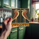 This ceramic tile features two birds reminiscent of the iconic style of Mackintosh. He was a prominent Scottish architect, designer, and artist of the Art Nouveau movement. Clean lines, geometric shapes, and a strong sense of symmetry characterize his work. These elements are beautifully represented in our collection of ceramic tiles.