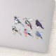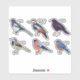 Beautiful set consisting of illustrations of different bird species, with their respective names. It includes a magpie, a woodpecker, a blackbird, a wagtail, a bullfinch, and a bluebird.