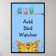 Whether a cat lover, a bird lover, a tree lover or an outdoor lover ... there is something for you in this image of a yellow tabby cat looking up at three colorful birds perched high above on a limb.