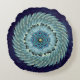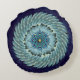 A beautiful abstract created from a photo of the wing of a bird in flight. At the center of the circle of feathers, a lattice-work Lotus mandala. All in luminous shades of blue and purple