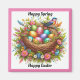 Lovely picture of a bird with a nest full of colored eggs and pretty flowers, is featured on this magnet for Easter. With message, "Happy Spring, Happy Easter", this colorful magnet would make a great decoration or small gift for Easter time!