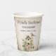 Birdhouse with floral and greenery botanical 75th birthday party paper cups. Personalized with the name and age of the guest of honor along with the date of her party. Contact me for assistance with customization or to request matching or coordinating Zazzle products