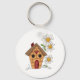Birdhouse with Daisies and Heart Folk Art Keychain