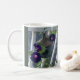 Delicately suspended on a balcony rail overlooking a shingled roof, velvety purple morning glories twine tenderly around a glazed-pottery birdhouse... the gentle textures and hues of this mug will add irresistible springtime charm to every sip. A perfect gift for someone who loves flowers and birds.