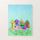Add some fun to any party or as a special novelty gift use this adorable Birdie Village Puzzle. Birdie Village is a cluster of six original whimsical birdhouses created by Debi Payne Designs. The birdhouses included in this cluster are Purple A-Frame, Checkerboard Base, Multi-Color, Pink House, Purple Round Roof and Yellow House. Using vivid tropical colors, each house is accented to create its own unique personality. The Birdie Village Cluster is over a background of soft variegated blues and greens to depict the sky and grass. Customize your Birdie Village products with a name or any text you choose. Birdie Village has many products that would be perfect for any real estate agent or gardener.