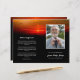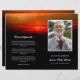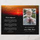 Sunrise-themed funeral program featuring a photo of your loved one against a background of a gathering of birds soaring across a glowing red sky. Add their name and years living along with obituary, order of service, and acknowledgements in a combination of modern and elegant white fonts against a black background. Bird at sunrise memorial service program you can fold yourself personalized with a photo of your loved one along with their name and years living. On the back you can write the obituary and program. Fold it yourself for a practical program!