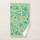 Beautiful towel set in with florals, birds, motifs backed in brilliant shade of yellow trimmed in aqua and tan. Unique vibrant design great for guest baths, or for special occasions weddings, showers etc. We have a great supply of towels from classics to eclectic to suite everyones palate.