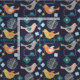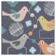 Such a pretty design inspired by modern mid century patterns with little birds, ditsy flowers and shapes in a colorful mix of pink, orange, mustard, gray, turquoise and navy.