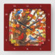 Birds in Autumn Maple Tree Red Square Wall Clock