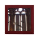 This product is made with beautiful mahogany wood, the inside is lined with white satin. The hinges are very sturdy and keeps a tight close on the box. The pattern tile is wonderful It's truly is an exquisite product. This is a gift for anyone and for any occasion. A fine wooden piece to display on your furniture anywhere in your home. The printing accented the design on the box very well. Very pleased with the Font.
