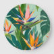 Birds in Paradise, Bird of Paradise Illustration, Bohemian Lush Green Painting, Vintage Botanical Floral Garden Poster, Orange and Pink Blossoms Art Print by 83 Oranges Uma Gokhale.
