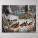 An old painting from the 1800's featuring a delightful colored illustration of birds in a winter setting.