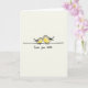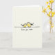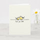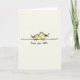 This card features two stylized birds facing each other on a thin black line against a creamy off‑white background. The larger bird has a soft gray back and a warm yellow chest, leaning in with its head tilted as if sharing a gentle kiss ❤️. The smaller bird nestles close, its tiny beak nearly touching the other’s, and their faint pink cheeks suggest a tender, affectionate moment. Soft, watercolor-like shading gives the birds a cozy, airy look while keeping the scene simple and uncluttered. Beneath the illustration, the message “Love you mum” appears centered near the bottom in small black lettering that looks casually written. The open space around the pair keeps attention on their closeness, like a quiet pause between two companions. The birds sit side by side on the single horizontal black line, with the larger one on the left and the smaller one on the right 🌼.