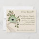 Whimsical moving announcement with tree, birdhouse and birds in tan and green.