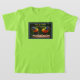 Colorful photo of two Lorikeets standing together with the words "Birds of a Feather Flock Together" above them in bright yellow lettering. Available in various styles, sizes and colors - but it looks best on this dayglow green shirt because of the colors of the feathers.