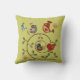 Birds of a Feather pillow features a folkart style design with birds of various colors, a swirled branch with leaves, and red swirl hearts.