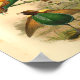 1876 vintage illustration of Birds of Paradise. With yellow, green, orange and brown feathers sitting on a tree branch.