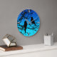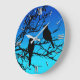 Birds on a Branch, Black Against Evening Blue Large Clock