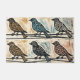 A linoprint of birds on telephone wires