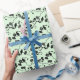 Birds on Cherry Blossoms Black on Mint Green Wrapping Paper