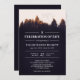 A memorial invitation featuring a photo of a flock of birds over sunlit tree tops of a pine forest. Add the invitation wording against a dark background.