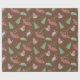 Brown Christmas wrapping paper featuring a charming design of fir trees, birds dressed in sweaters with earmuffs, green holly leaves, sprigs of holly berries and sleds full of Christmas presents to add a unique and whimsical touch to your Christmas gift wrapping this year.