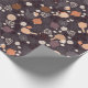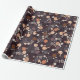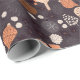 Enjoy the joy of Christmas giving! This Christmas wrapping paper has funny birds with hats, decorations, pins cones, flowers and leaves in brown and orange colors on dark brown background.