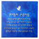 Text of the Birkat Habayit(ברכת הבית), Hebrew for "Blessing for the Home", superimposed on a blue and white fractal image reminiscent of feathers or clouds. A small Star of David (Magen David) is located in the center of the fractal and a white dove carrying a sprig of olive branch also appears.