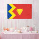 This design features the flag of Birmingham, which is the second-largest city in England and the United Kingdom. The city is located in the English region of the West Midlands. The flag contains a yellow bull's head, which is reminiscent of Birmingham's Bull Ring, a major shopping centre.