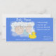 Share your great news with friends and loved ones. Set against a blue background, your photo will be framed with bubbles and a rubber ducky that elicits a playful reminder of baby-hood. Modify the text to include your baby's name, birth date, and birth details. If you like, you can also modify the included poem to insert your own announcement or invitation. Include your contact information -- if you're a new parent, you might want to include visiting hours! Don't forget to upload your no doubt adorable photo of your little one.
