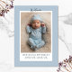 Announce your little one's arrival in style with this minimalist and modern birth announcement card! Featuring a soft dusty blue background, this elegant design showcases your precious newborn's photo within a crisp white frame. Delicate script whispers "welcome" at the top, while your baby's name, birth date, weight, and a loving message from you are displayed below. A simple and sophisticated aesthetic. Personalize the card with a vertical portrait photo of your newborn and easily edit the text templates for your own custom baby announcement card.