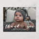 Modern Photo Baby Birth Announcement Postcard. Design featuring thank you script, single photo of the baby, birth stats, date and a name on the front. Personalize with another photo and your thank you message on the back.