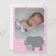 Baby girl birth announcement with grey elephants. Customizable with your baby's photo and birth statistics.
