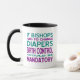 Liberal, progressive, Democrat and/or pro-Obama words read, "If bishops had to change diapers birth control would be mandatory." Teal and purple writing. Apx. 10x10 square.