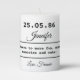 Birth Date Name Script Black White Chic Birthday Pillar Candle