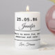 This birth date, or birthdate, candle is simple, yet elegant. It features black typography and script on a white background. There are four text boxes for you to customize. At the top of the candle you can add a birth date using the day.month.year format. The next text box boldly displays the name of the recipient. Then comes an opportunity to add a short sentiment, message or quote, and finally you can add your complimentary close. Create the perfect gift for a friend, be it his or her birthday, anniversary, or one-off gift, make your friend's day special with this personalized birthdate candle.