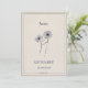 Gift card date to personalize. Flower of the month of birth of September: Aster. Solid white face. Original design made on Procreate.