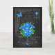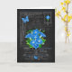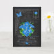 This card with a luxe look has hand-drawn flower illustrations of birth flower bouquets and bright birthstones for September birthdays, anniversaries and special days. Black chalkboard with antique engravings of decorative hardware provide a nostalgic background for the bunches of flowers, gems and bejewelled butterflies.