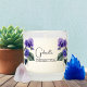 Birth month flower February Violet personalized candle featuring an illustrationof violet flowers. The custom name is written in a stylish script font above the flowers. Below the name, it states "February - Violet," indicating that birth month is February and birth flower is violet. It's a charming candle, customized as a special gift for someone born in February.