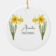Birth month flower March Daffodil ornament featuring an illustration of daffodil flowers. Beneath the flowers, the name "Alexandra" is written in a stylish script font. Below the name, it states "March - Daffodil," indicating that Alexandra's birth month is March and her birth flower is the daffodil. It is a personalized ornament , likely customized as a special gift for someone born in March.