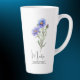 Birth month flower September Aster latte mug featuring an illustration of an aster flower. Below the flower, the name is written in an elegant script font. Beneath the name, it states "September - Aster," indicating that the owner's birth month is August and her birth flower is the gladiolus. It is a personalized mug, customized as a thoughtful gift for someone born in September.