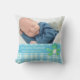 Playful frog throw pillow cushion a perfect newborn baby boys gift. Cute pillow looks great in a baby's nursery or use for nursing. Customise with your own special photo, name and birth date. Would make a lovely unique commemorative gift for a newborn baby. Uniquely designed by Sarah Trett.