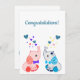 This congratulations card has twin baby elephants facing each other and showering colorful hearts from their trunk. One the cartoon style elephants is shades of blue and is wearing a blue tie. The other is in shades of pink with a purple bow at its neck You can change the text to change this card to make it suitable for many occasions, including the adoption of twins or siblings. All of the text on the front and back can be changed